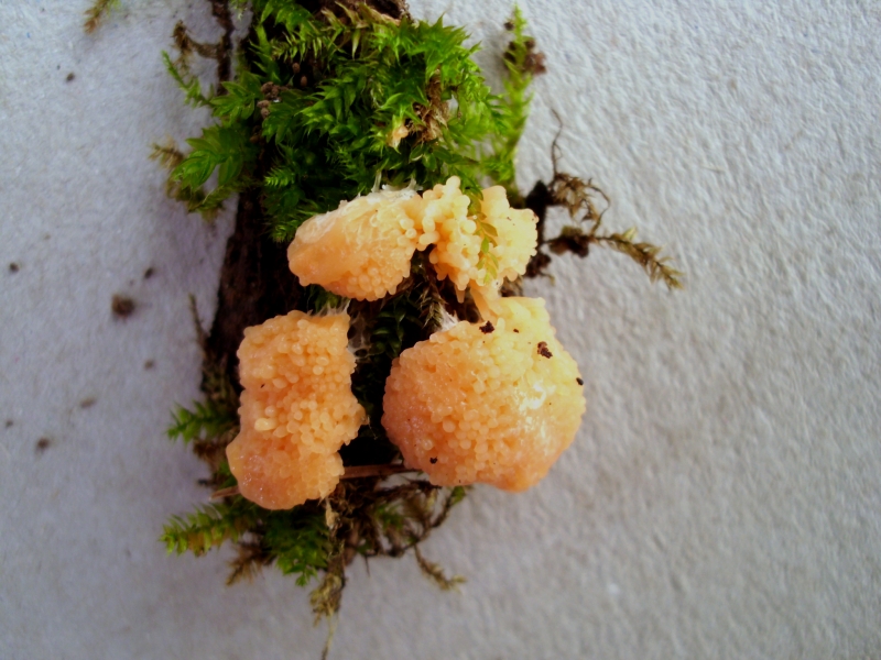 Gefunden auf einen bemoosten Rotbuchenstubben mit Fuligo septica. |
