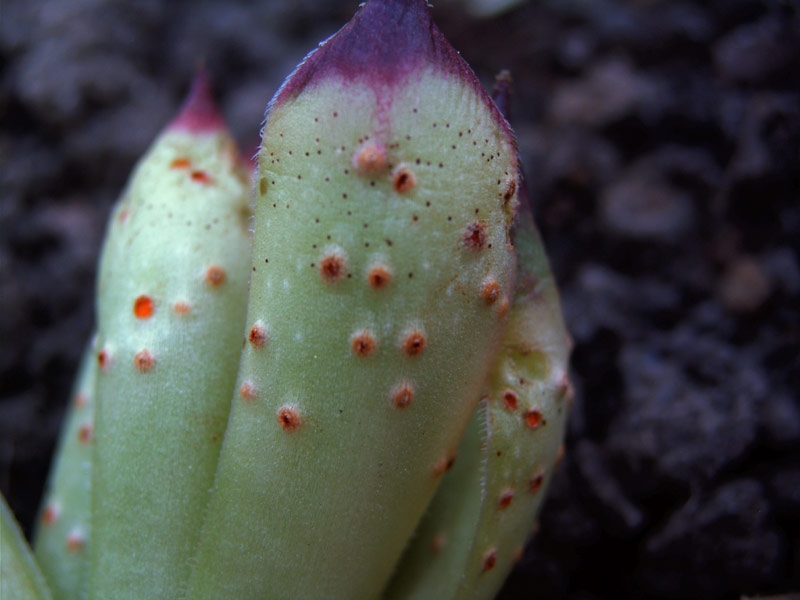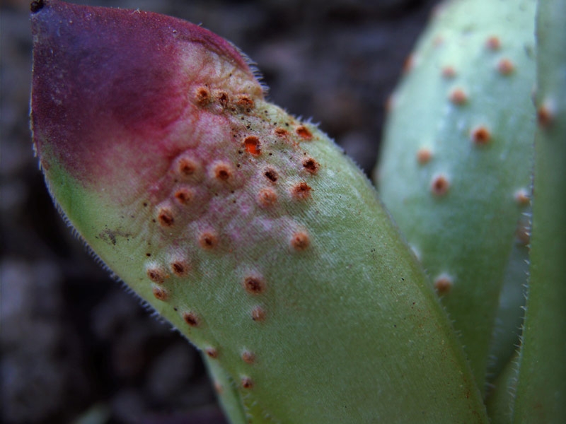 Orangene Pusteln auf der Blattaußenseite. |